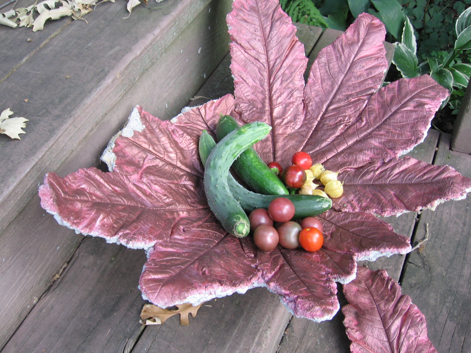 At 6:00 are some awesome black cherry tomatoes that are like candy. There's also one Principe Borghese tomato there, too (I think that's the first one to make it in the house - I usually just eat them in the garden!). At Noon are a couple of sweet cherry peppers and a few more ground cherries. And there are two different kinds of cucumbers there, too.