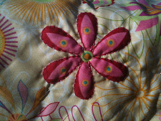 I had small scraps left over from a baby quilt, and decided to put them to use by making a coordinating diaper changing pad. Each square was 1.5 inches for a finished square of 1 inch. The fabric for the backing is a favorite from my stash - it doesn't necessarily match the colors on the front patchwork, but I loved it so much, I decided to use it anyway.